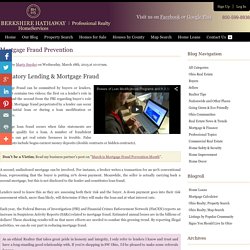 Lenders Pressed on Fraud-Prevention Efforts From: American Banker Friday, October 7, "Mortgage fraud is an issue of concern at the national level "We ha ve best practices in fraud detection and prevention in place and are proactive in reporting suspected incidences of fraud." ... Access Doc