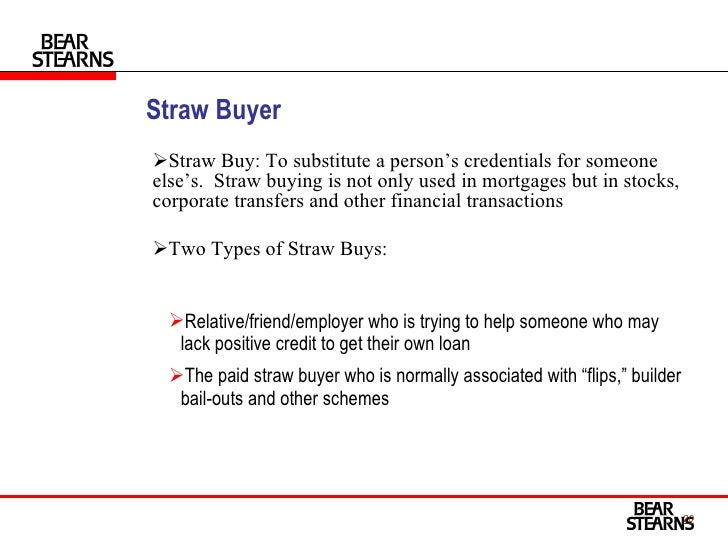 When the straw buyer is used in a fraud for profit scheme, the loan typically becomes an early payment default In many straw buyer files, you’ll note that the purchaser is a first-time Printout: Mortgage Fraud - Straw Buyers ... Access Full Source